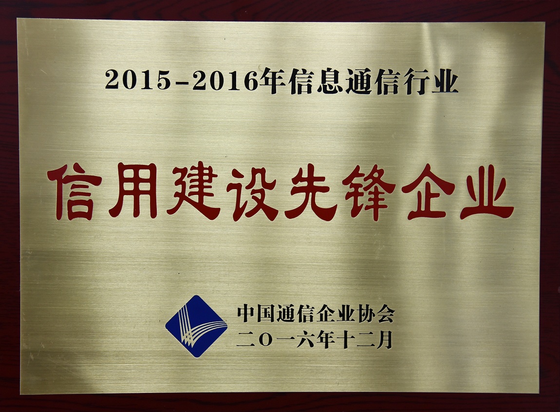我公司被中國通信企業(yè)協(xié)會評為2015-2016年信息通信行業(yè)信用建設先鋒企業(yè)