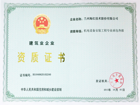 我公司獲得機(jī)電設(shè)備安裝工程專業(yè)承包三級(jí)資質(zhì)證書