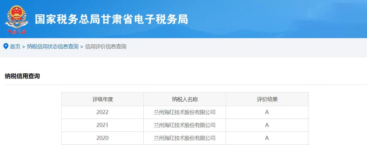 我司被國(guó)家稅務(wù)總局甘肅省稅務(wù)局評(píng)價(jià)為“2022年度納稅信用A級(jí)納稅人”