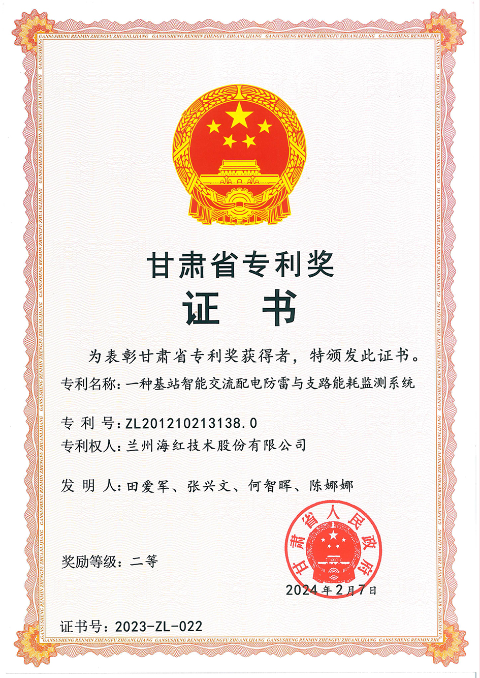 我司發(fā)明專利“一種基站智能交流配電防雷與支路能耗監(jiān)測(cè)系統(tǒng)”榮獲甘肅省專利獎(jiǎng)二等獎(jiǎng)。 截至目前,我司發(fā)明專利中已有四項(xiàng)榮獲甘肅省專利獎(jiǎng),這是對(duì)我司技術(shù)創(chuàng)新實(shí)力和研發(fā)水平...