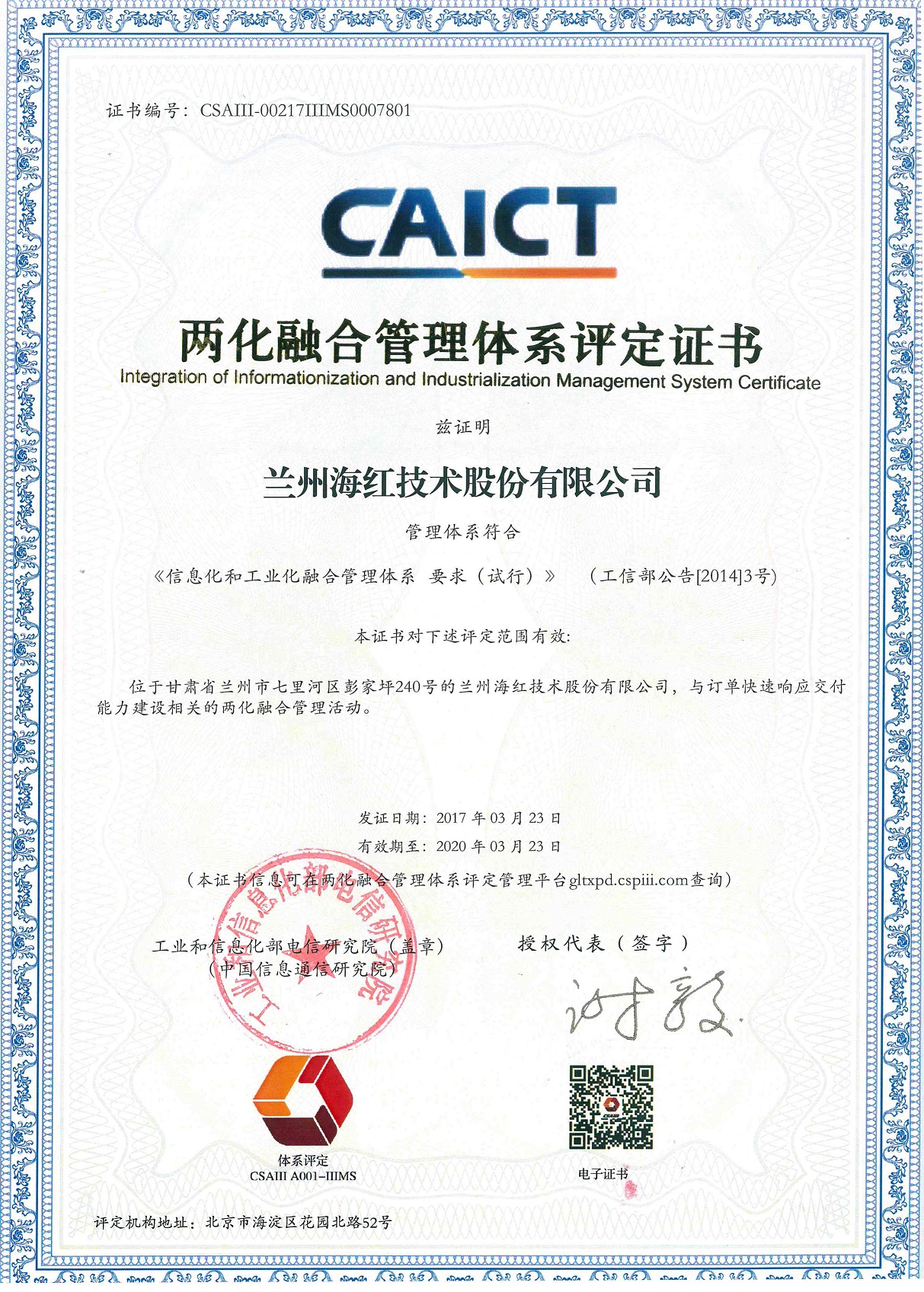 我公司“海紅通信”商標被甘肅省工商行政管理局續(xù)展認定為“甘肅省著名商標”