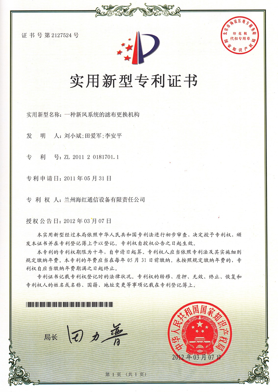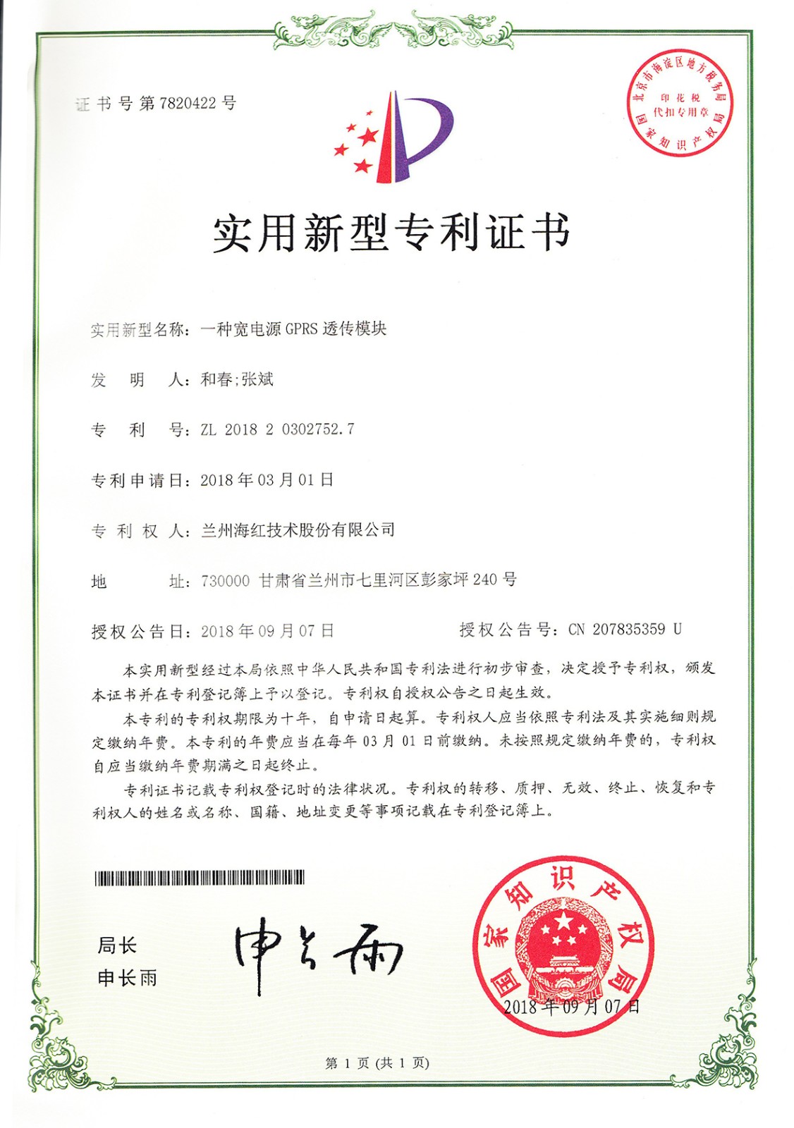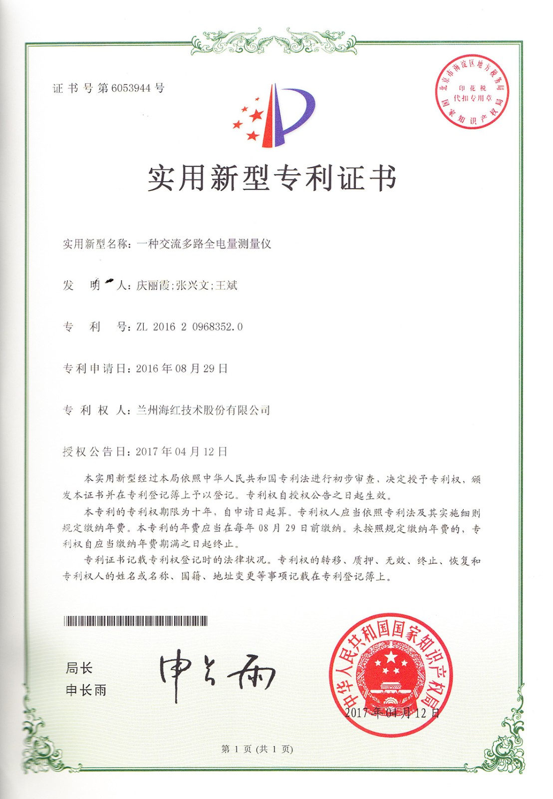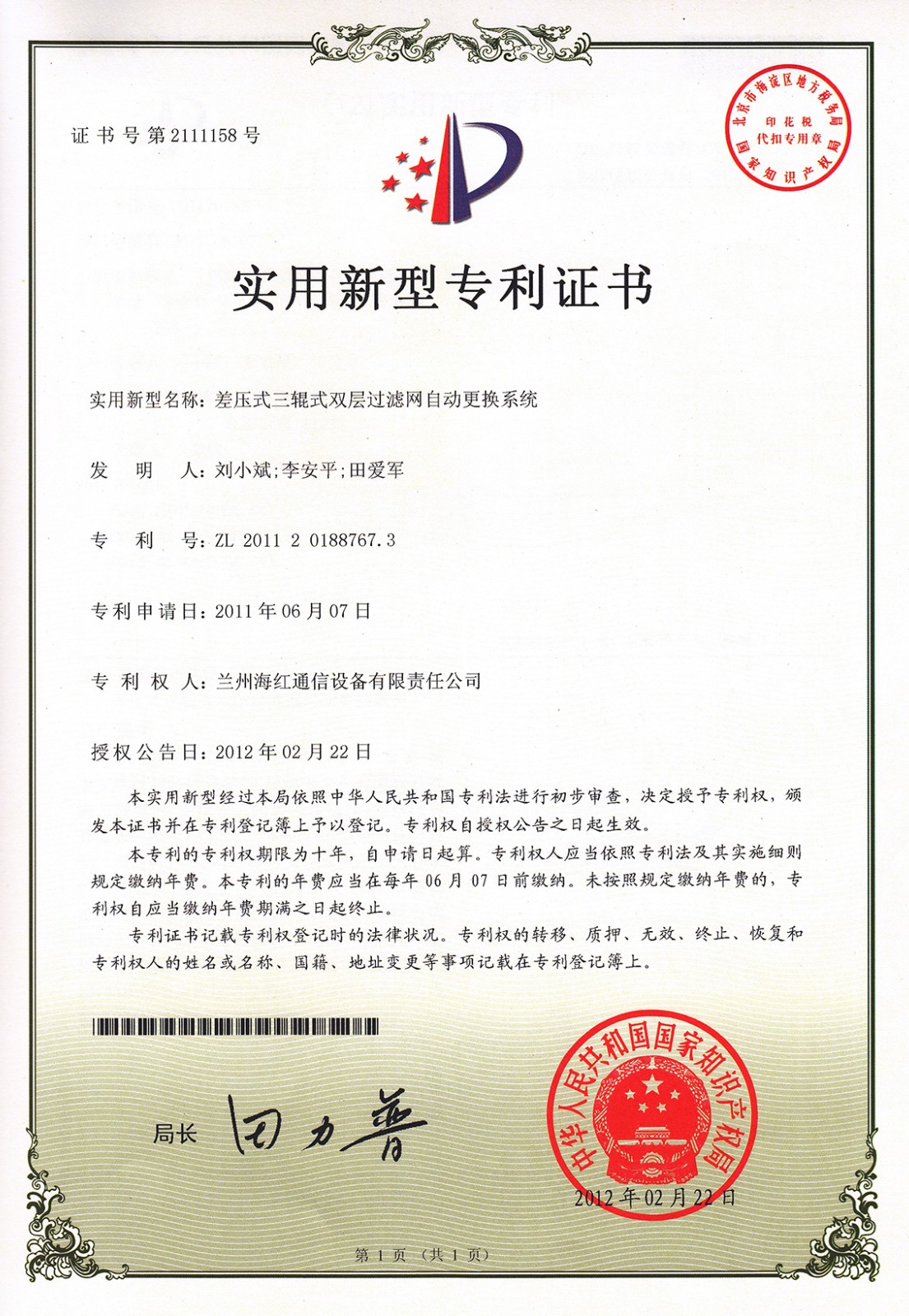 實用新型專利證書系列