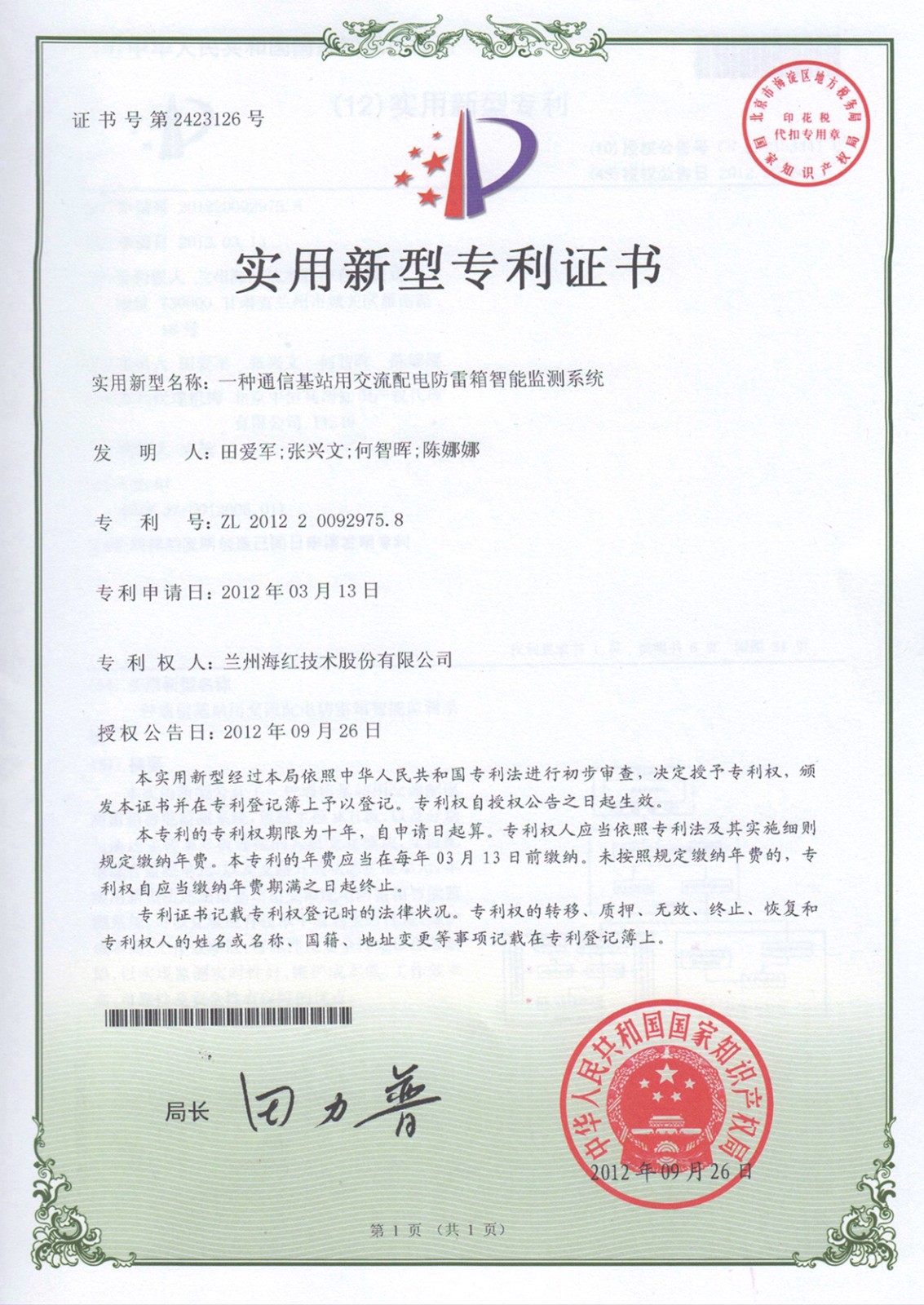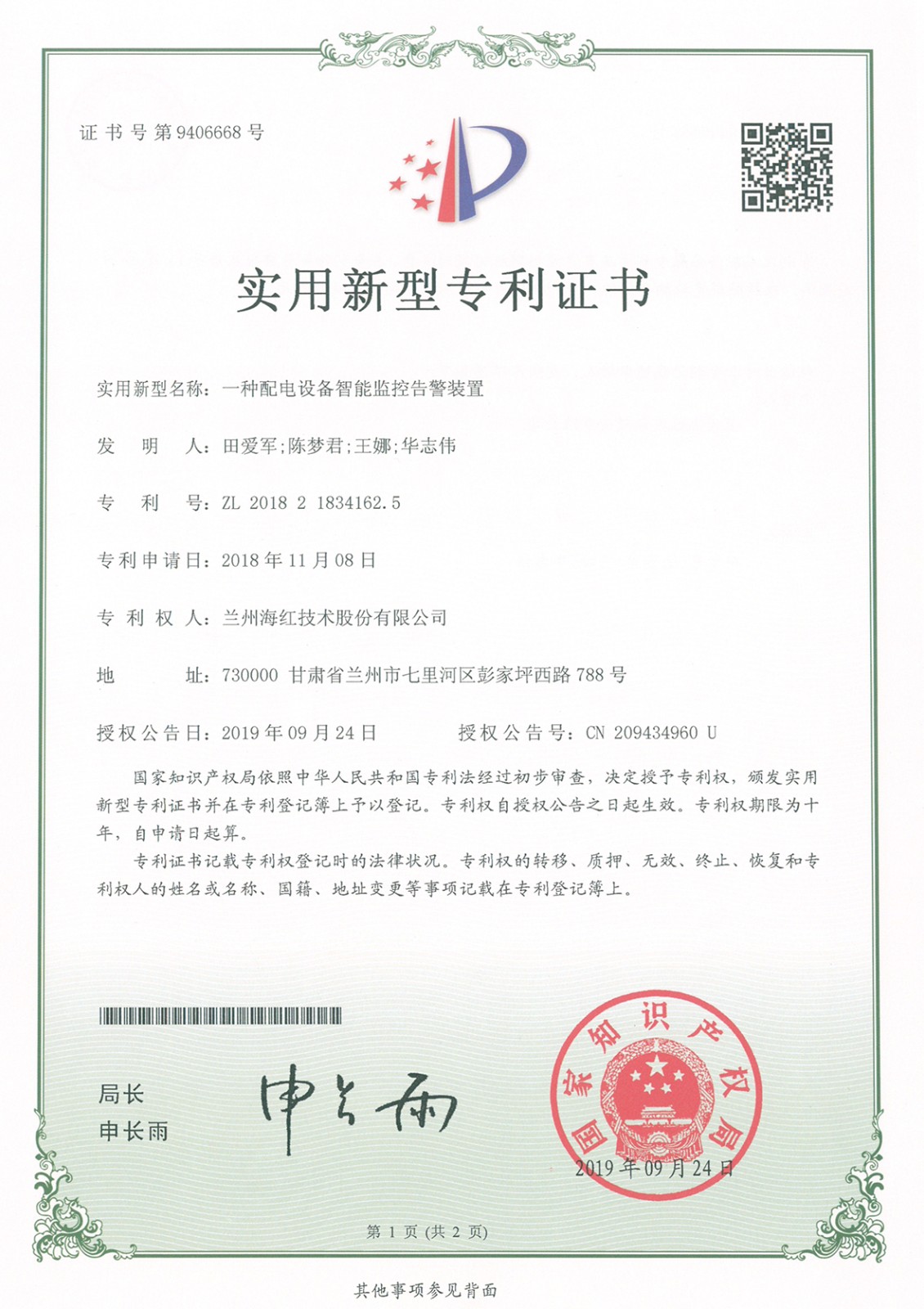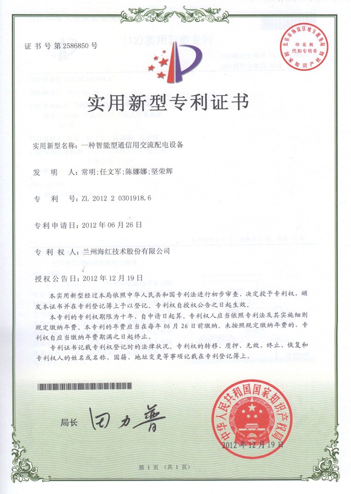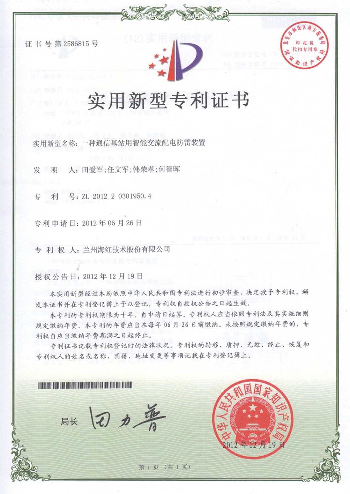 實用新型專利證書系列