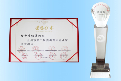 2013年11月8日,為表彰蘭州市杰出(優(yōu)秀)青年企業(yè)家在我市經(jīng)濟(jì)發(fā)展中所做的突出貢獻(xiàn),市委組織部、市工信委、團(tuán)市委等8家單位聯(lián)合授予曹振海等10名同志為“蘭州市第二屆杰出青年企業(yè)家”(同時(shí)授予另10名同志為“蘭州市第二屆優(yōu)秀青年企業(yè)家”)榮譽(yù)稱號。