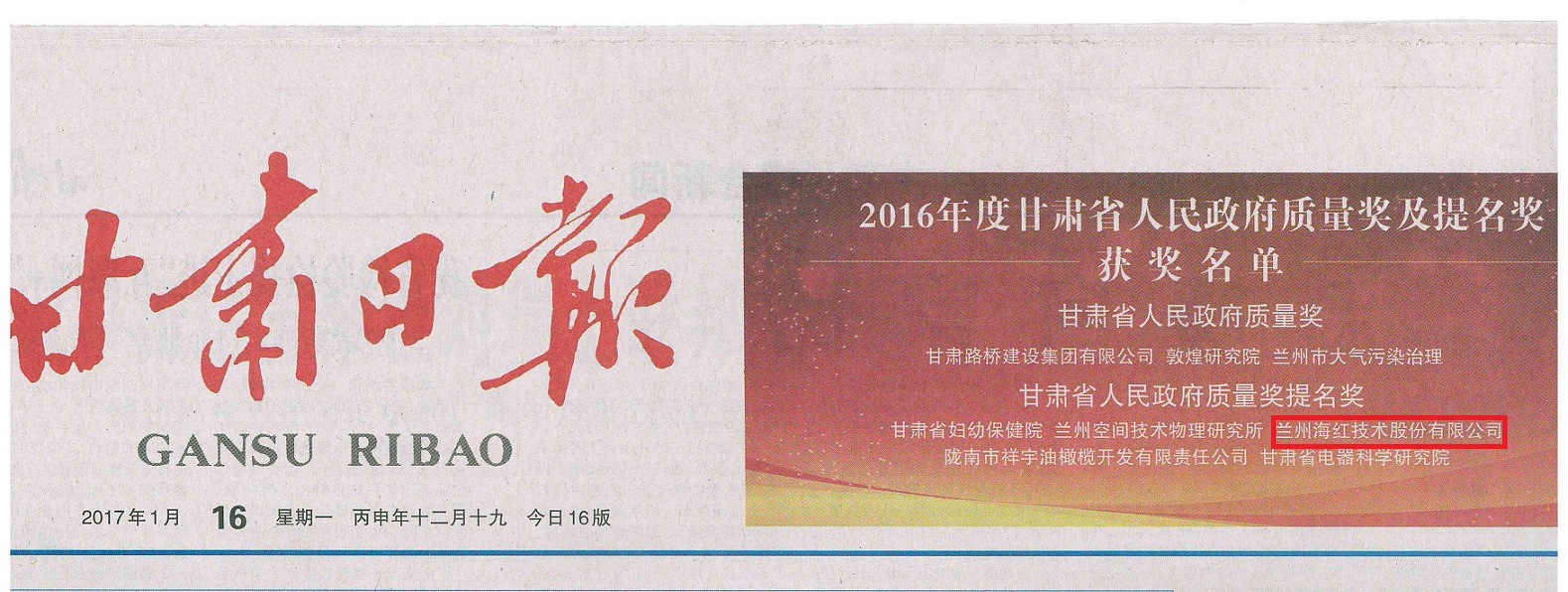 我公司榮獲2016年度“甘肅省人民政府質(zhì)量獎(jiǎng)提名獎(jiǎng)” By 海紅技術(shù) 2017-01-20 00:00:00 0次 上一篇:我公司“電動(dòng)汽車(chē)充電樁”產(chǎn)品榮獲甘肅省第二屆“創(chuàng)新杯”工業(yè)設(shè)計(jì)大賽(產(chǎn)品組)銅獎(jiǎng) 下一篇:我公司“一種直流配電設(shè)備智能監(jiān)控與能耗監(jiān)測(cè)系統(tǒng)”發(fā)明專(zhuān)利榮獲甘肅省專(zhuān)利獎(jiǎng)