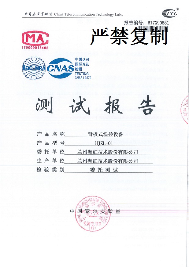 我公司的“背板式溫控設(shè)備(HJZL-01)”產(chǎn)品取得中國泰爾實(shí)驗(yàn)室的委托測試測試報告。至此,我公司共取得32個產(chǎn)品的試驗(yàn)檢驗(yàn)報告。