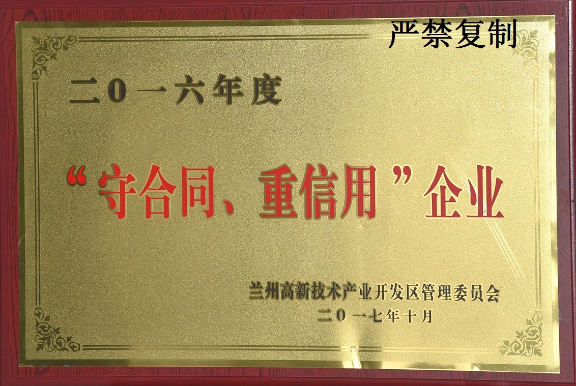 我公司及子公司(海源科技)分別榮獲2016年度甘肅省、蘭州市、蘭州高新區(qū)“守合同、 重信用”企業(yè)榮譽稱號