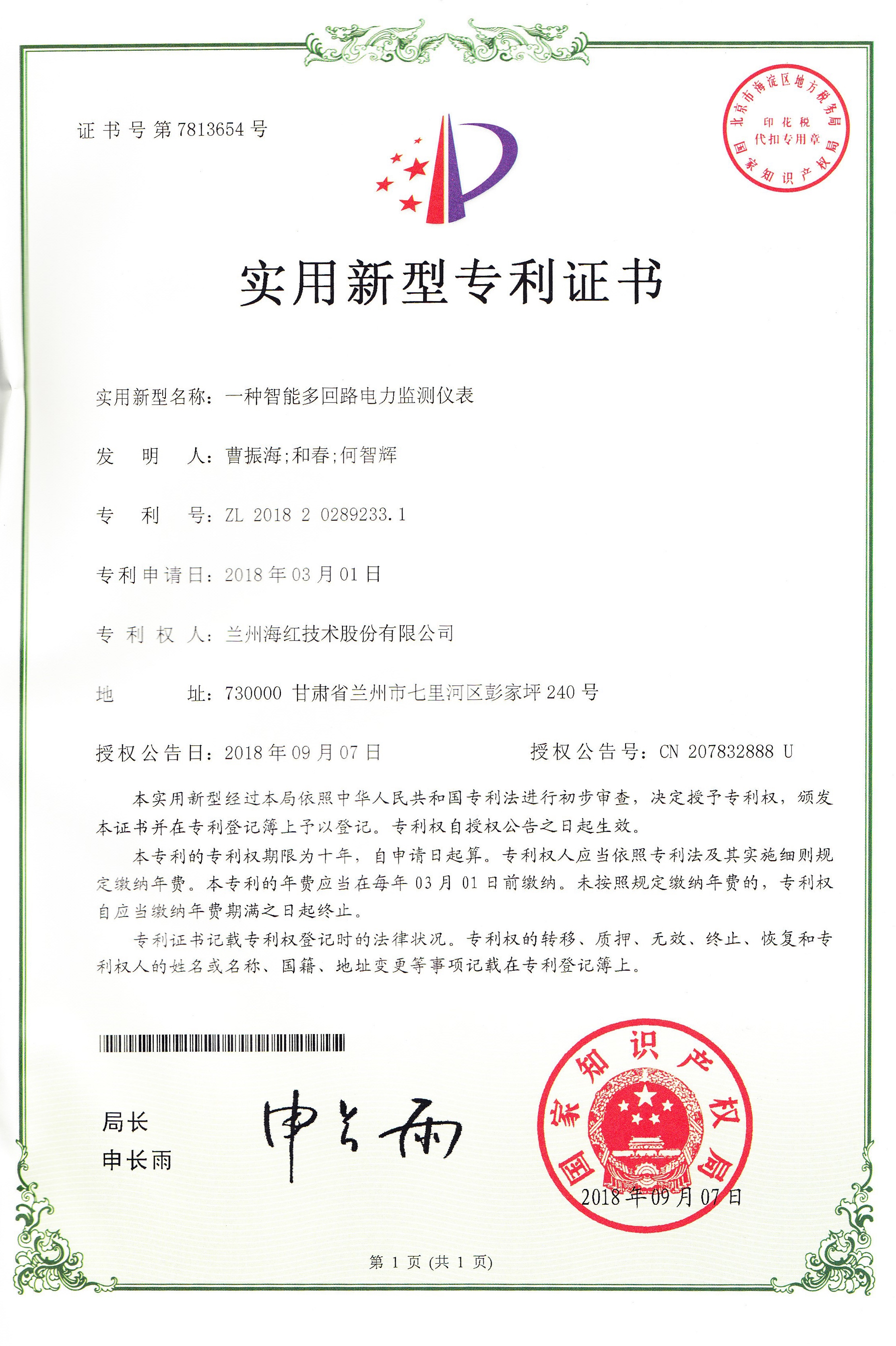 我公司又取得二項(xiàng)實(shí)用新型專利,至此我公司申請(qǐng)受理的專利數(shù)累積99項(xiàng)(其中發(fā)明專利28項(xiàng),實(shí)用新型專利60項(xiàng),外觀設(shè)計(jì)專利3項(xiàng),軟件著作權(quán)8項(xiàng)),已獲得授權(quán)74項(xiàng)(其中發(fā)明專利8項(xiàng),實(shí)用新型專利55項(xiàng),軟件著作權(quán)登記8項(xiàng),外觀設(shè)計(jì)專利3項(xiàng))。
