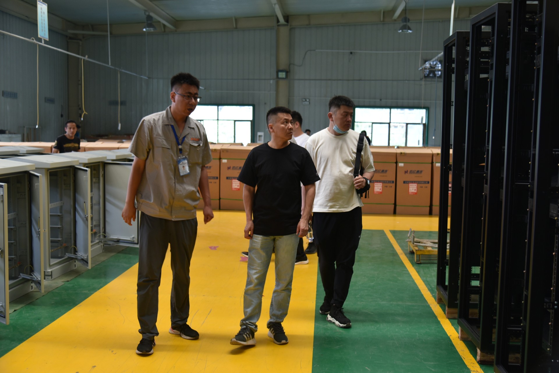 7月14日,中國聯(lián)合網(wǎng)絡通信有限公司青海省分公司網(wǎng)絡部副總經(jīng)理李巍一行蒞臨我司,對我司列頭柜、冷風通道、網(wǎng)絡機柜、DC艙、方艙、高低壓成套電氣及自動化控制設備等產(chǎn)品的研發(fā)能力、設計能力及生產(chǎn)交付情況進行考察,參觀了產(chǎn)品展廳、技術中心、生產(chǎn)車間等地。