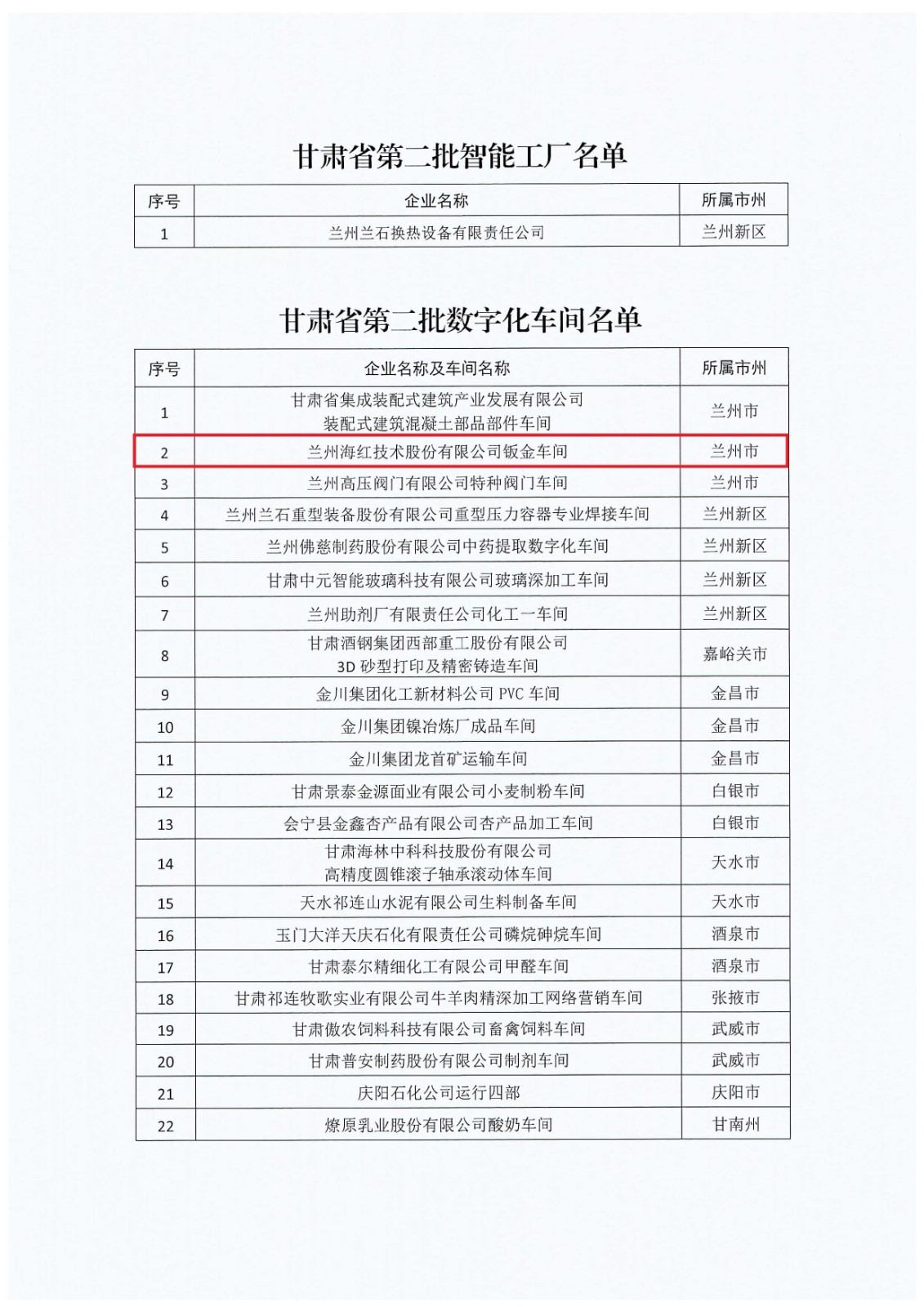 甘肅省工業(yè)和信息化廳發(fā)布甘肅省第二批數(shù)字化車間名單公告,我司鈑金車間被認(rèn)定為甘肅省第二批“數(shù)字化車間”。