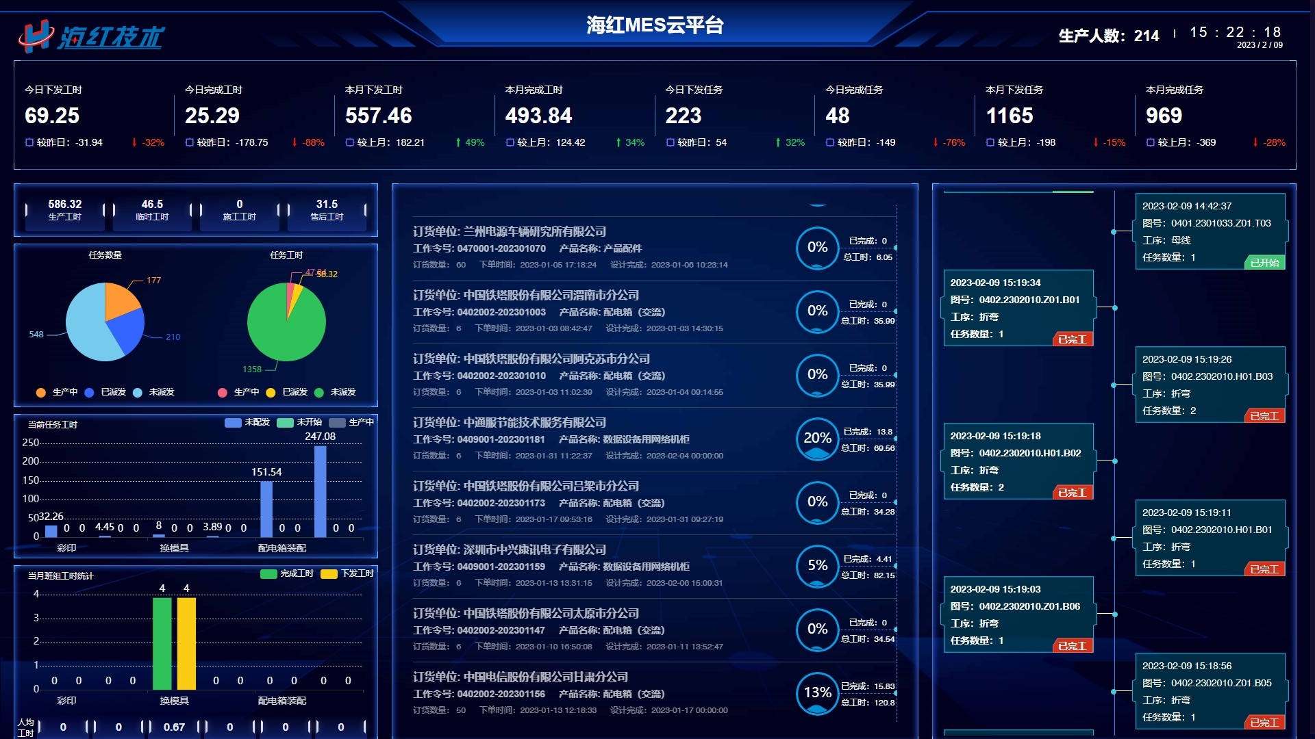 近年來我司非常重視信息化、智能化建設(shè),不斷提高設(shè)備的自動化、智能化水平,并自主研發(fā)搭建海紅MES系統(tǒng)(生產(chǎn)制造執(zhí)行信息化管理系統(tǒng))及BPM系統(tǒng)(業(yè)務(wù)流程管理系統(tǒng)),將生產(chǎn)制造與大數(shù)據(jù)、人工智能等信息技術(shù)進(jìn)行深度融合,實現(xiàn)產(chǎn)品生產(chǎn)過程全流程精細(xì)化管控。