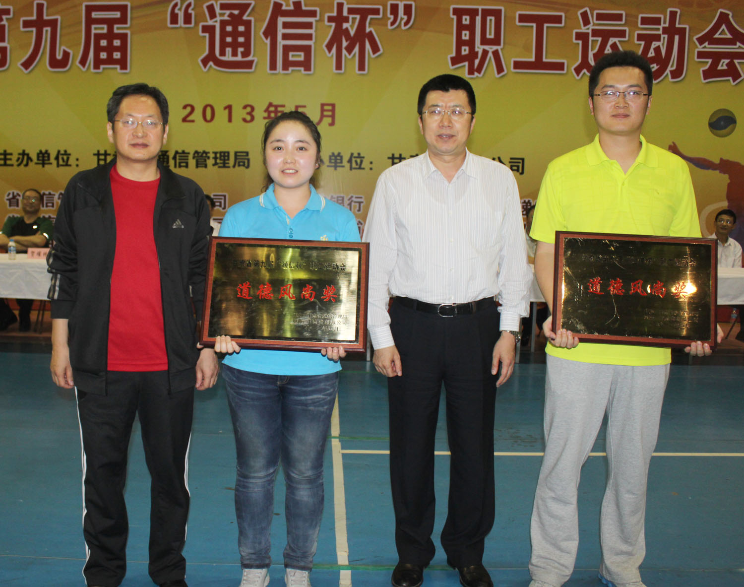 為進(jìn)一步落實(shí)《全民健身綱要》,由省通信管理局主辦,省郵政公司承辦的甘肅省第九屆“通信杯”職工運(yùn)動(dòng)會(huì)于2013年5月30日至31日在蘭州體育館舉行。期間,公司董事長(zhǎng)曹振海先生出席了開幕式。