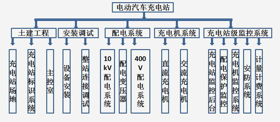 充電站整體建設(shè)涵蓋中低壓配電系統(tǒng)、充電系統(tǒng)、監(jiān)控系統(tǒng)、土建施工、安裝調(diào)試、竣工驗(yàn)收等。