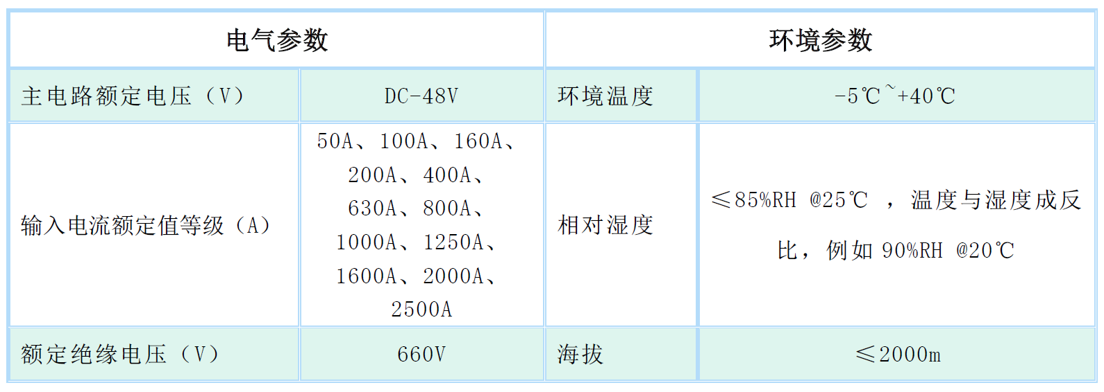 1)通信用智能交、直流配電設(shè)備由柜體、智能監(jiān)控系統(tǒng)、主要元器件、母線等組成。