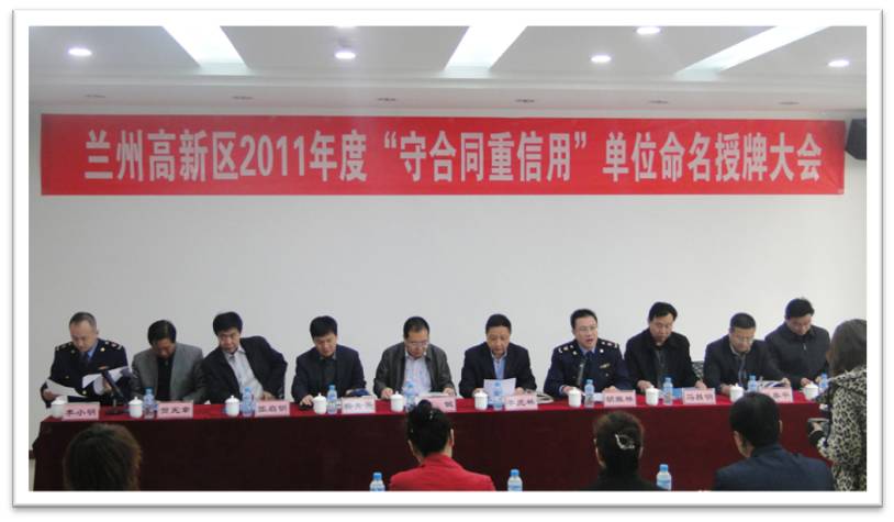 會議當(dāng)天,蘭州高新區(qū)主要領(lǐng)導(dǎo)對所有“守合同、重信用”企業(yè)進行授牌。我公司行政人資中心總經(jīng)理焦旭麗作為3家企業(yè)代表之一,在現(xiàn)場做了守重工作匯報及交流。高新區(qū)管委會主任李虎林在會議上強調(diào),企業(yè)信用建設(shè)是一項長期的工作,任重道遠(yuǎn),要堅持以科學(xué)發(fā)展觀為指導(dǎo),踏實工作,開拓創(chuàng)新,切實加強企業(yè)信用體系建設(shè),為把蘭州高新區(qū)建成促進全市經(jīng)濟社會率先跨越發(fā)展的重要戰(zhàn)略支點做出新的貢獻。